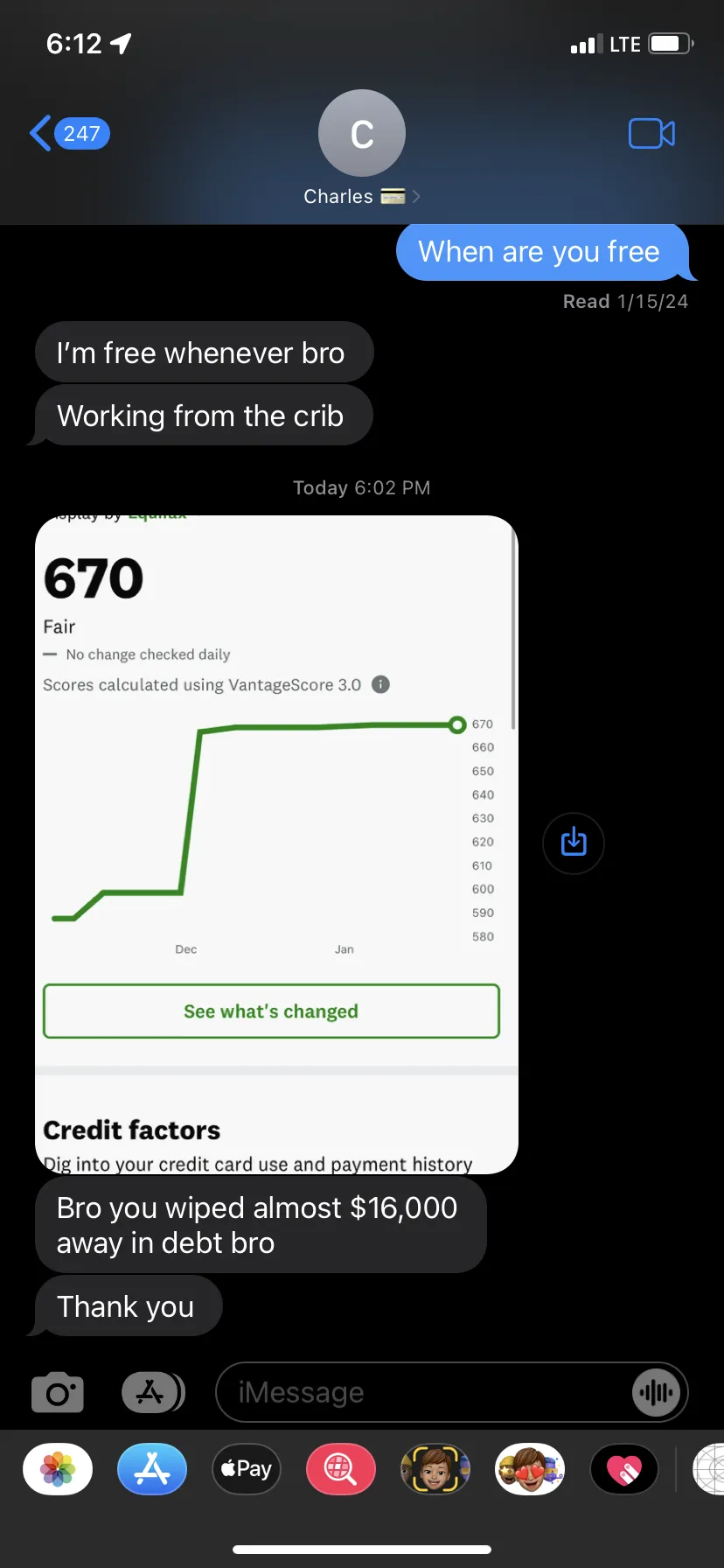 "Just wanted to say thank you for everything you've done for me so far bro. My TU score is up 71 points." - Kelvin